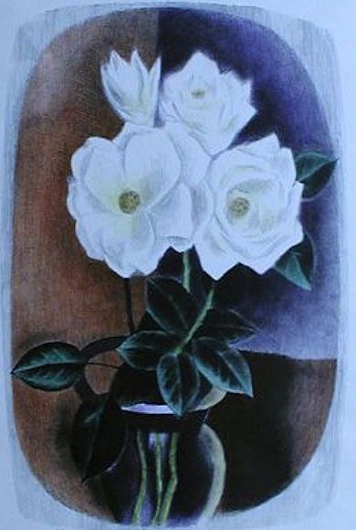 *Title: The title "White Roses" appears l.l. following the numbering on the PRF impression. It also appears at the bottom edge of the sheet of the WMAA impression but not in Fiene's hand. The Downtown Gallery exhibition catalogue of Fiene's "New Lithographs" of 1928 includes a work noted as "White Roses (in color)." The GU impression uses the title "Still Life," although this title does not appear on the print. All other observed impressions bear no title. **Editions , Medium:and Color: Indications of three edition sizes have been noted, leaving the specifics of the edition ambiguous: an edition of 10 black ink impression; an edition of 50 of which all observed impressions are either printed in color or hand-colored; a reference in the Downtown Gallery catalogue of 1928 to a print titled "White Roses (in color)" in an edition of 30. This catalogue raisonné accepts an edition of 10 and an edition of 50, considering the Downtown Gallery number an error.